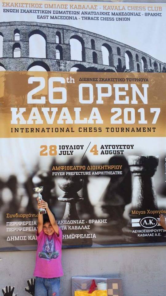 Ολοκληρώθηκε το 26ο Διεθνές τουρνουά της Καβάλας. Μεγάλη επιτυχία για τον 8χρονο Σκακιστή της Ακαδημίας μας, Καρακώτσιο Κωνσταντίνο, που ισοβάθμισε στην πρώτη θέση και κατετάγει δεύτερος στην τελική κατάταξη του 3ου γκρούπ του τουρνουά!