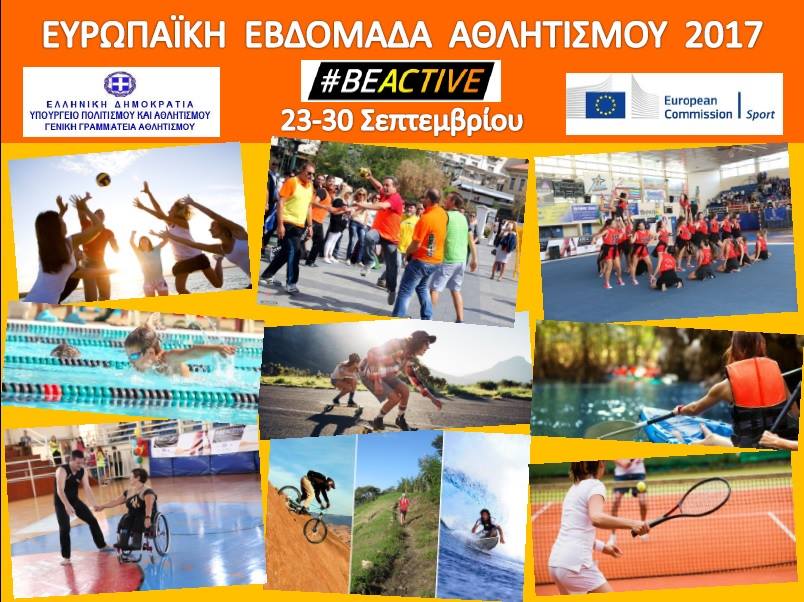 H εκδήλωση εντάσσεται στην Ευρωπαϊκή Εβδομάδα Αθλητισμού, 23-30 Σεπτεμβρίου 2017 #BEACTIVE που τελεί υπό την αιγίδα της Γενικής Γραμματείας Αθλητισμού. Η συμμετοχή είναι ανοικτή για κάθε ενδιαφερόμενο, ανεξαρτήτως ηλικίας, φύλου ή δυναμικότητας.